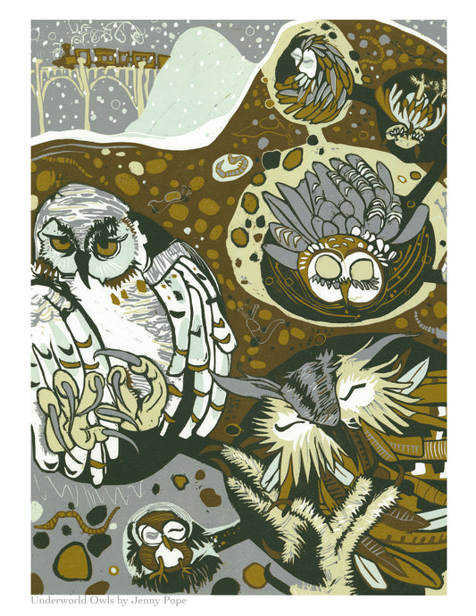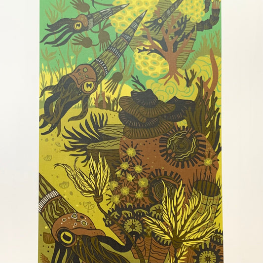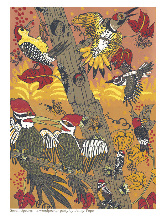 Reproductions of my sold out woodcuts printed on a fine linen 11x17" paper. Can be easily framed in a standard frame that can be found at a local shop or online. The frame is often called a "Document Frame." Cards are A2 and come in a 3 pack with envelopes.