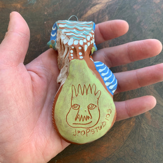 Pre-order Dart frog woodcut framed in olive green solid tiger maple wood