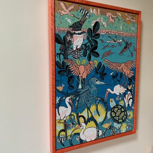 Last One Purple IN STOCK Aster and goldenrod woodcut framed in curly maple