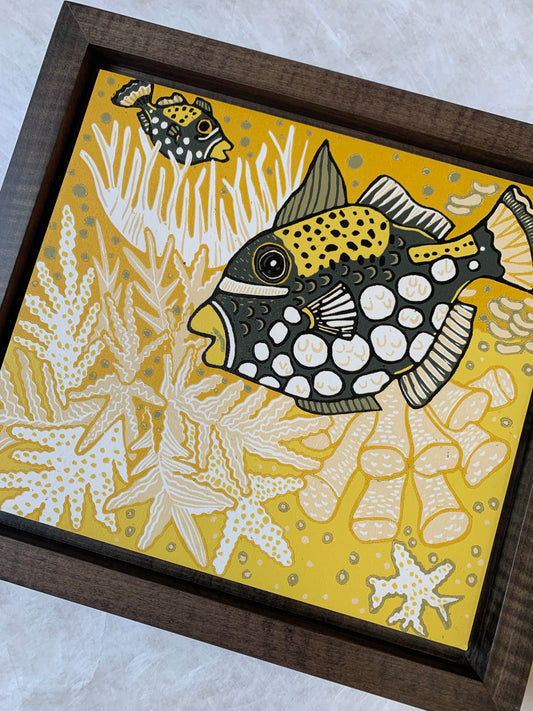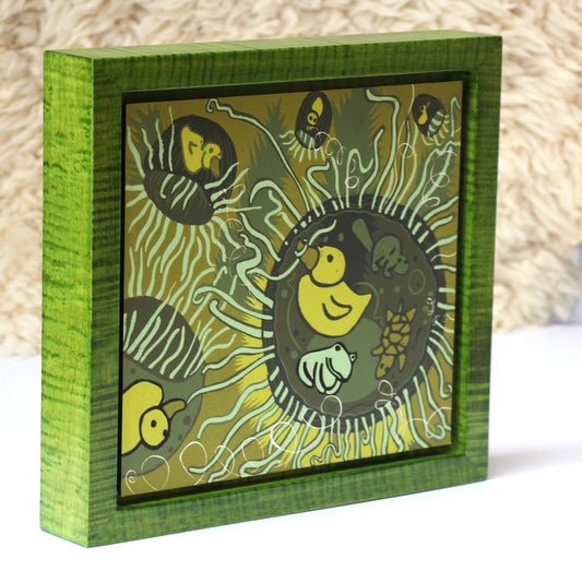 Pre-order Jellyfish and Rubber Duck woodcut framed