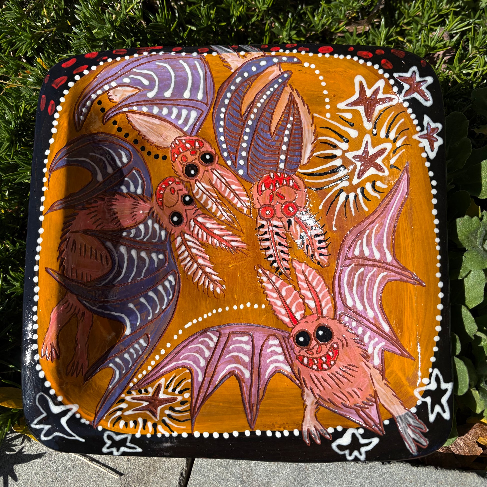 Is it cute? Is it spooky? Get your toothy purple bats here. I use this size bowl for pasta meals all the time. I have a whole stack of them in my cabinet.