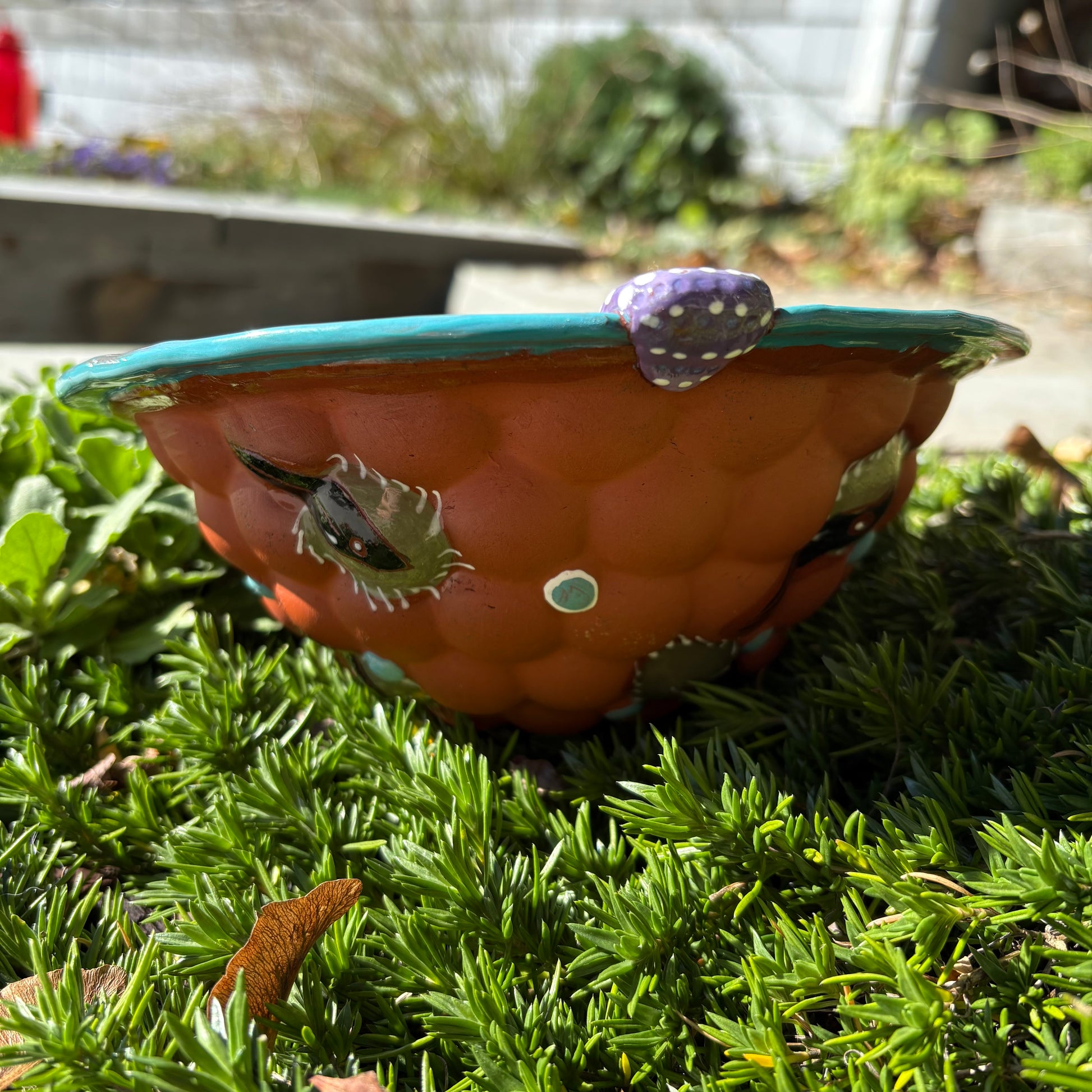I love this shape and size serving bowl. You could even use it as a large meal bowl, or just keep it on your table because it has lots of pretty little lines. And cedar waxwings. Who doesn't love cedar waxwings?