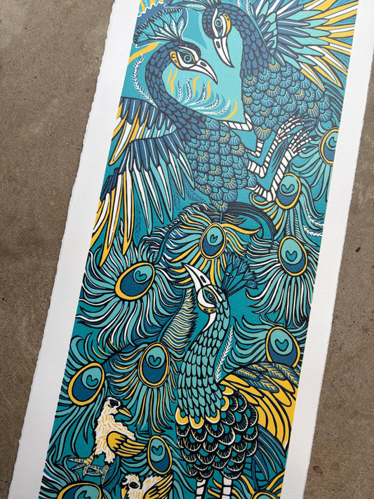 LAST ONE UNFRAMED Cactus, bats and sphinx moth pollinator original woodcut